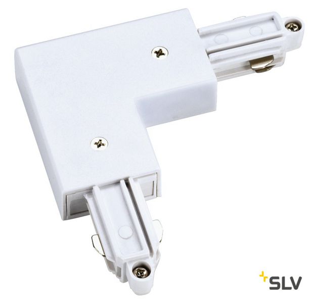 1PHASE-TRACK, L-коннектор с разъёмом питания, 16А макс., GND по внутреннему углу, белый