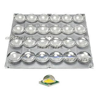 Блок линз 4х6 для мощных светодиодов 'Emitter', CREE XP, smd до 5х5мм (24шт). Размер: 120x120 мм, H=12.5 мм. Угол: 70°. Используется с платой STB 24, 100, 120, 121. Крепление под винт.