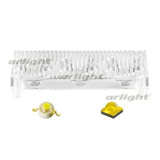 Под заказ. 20x60° линейный блок линз для 3шт мощных светодиодов любого типа (Cree/Emitter). Поверхность микропризма. 4 ножки, под запайку. Габариты 79,5x30мм.