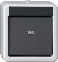 - При одноточечном управлении (расположенная под углом клавиша) клавишей можно управлять только с одной стороны (внизу). Кнопочный шинный контроллер в системе с защитой от воды накладного монтажа (IP44). Функции светодиода состояния: Красный светодиод может служить, по выбору, в качестве освещения для ориентации, для показа активации или показа состояния.