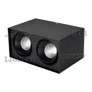 Накладной светильник 2x11Вт, черный квадратный корпус. Цвет ДНЕВНОЙ БЕЛЫЙ 4000K, св.поток 1700лм, CRI(Ra)>80, угол 40°, регулируемое направление луча 30°. Размер 100x200x135 мм. Питание AC 220-240V, 22Вт, драйвер встроенный 2 шт (DC500mA 14-24V).