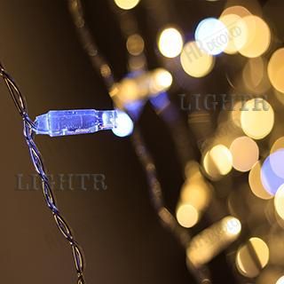 Светодиодная гирлянда "Занавес" серии Classic. Размер 2000*3000 мм (длина 2000 мм, высота 3000 мм). Цвет светодиодов ТЁПЛЫЙ БЕЛЫЙ+БЕЛЫЙ мерцающий. Материал провода - прозрачный ПВХ. Диаметр провода 2.3 мм. 20 нитей длиной 3000 мм, ниспадающих вниз. Количество светодиодов 760 шт, 38 на каждой нити. Размер светодиодов 5 мм с защитным колпачком с вогнутой внутрь линзой. Напряжение питания AC 230V, потребляемая мощность 60W. Гирлянда укомплектована проводом питания с выпрямителем. Степень защиты от воздействи
