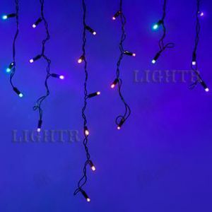 Светодиодная гирлянда "Бахрома" серии Classic. Размер 2400x600 (длина 2400 мм, максимальная высота 600 мм). Цвет светодиодов RGBY (цвет светодиодов чередуется). Материал провода - чёрный ПВХ. Диаметр провода 2.3 мм. 24 нити длиной от 200 до 600 мм, ниспадающих вниз. Количество светодиодов 88 шт. Размер светодиодов 5 мм с защитным колпачком и вогнутой внутрь линзой. Напряжение питания DC 230V, потребляемая мощность 6W. Степень защиты от воздействия окружающей среды IP65. Температурный режим работы от -30 г