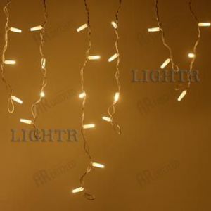 Светодиодная гирлянда "Бахрома" серии PRO. Размер 5600x900 (длина 5600 мм, максимальная высота 900 мм). Цвет светодиодов ТЁПЛЫЙ БЕЛЫЙ (3000К). Эффект мерцания (Белый цвет 6000К). 180-200 вспышек в минуту. Материал провода - белый РЕЗИНОВЫЙ (каучук). Диаметр провода 3.3 мм. 48 нитей длиной от 200 до 900 мм, ниспадающих вниз. Количество светодиодов 240 шт. Размер светодиодов 5 мм с защитным колпачком и вогнутой внутрь линзой. Напряжение питания DC 230V, потребляемая мощность 15W. Степень защиты от воздейств