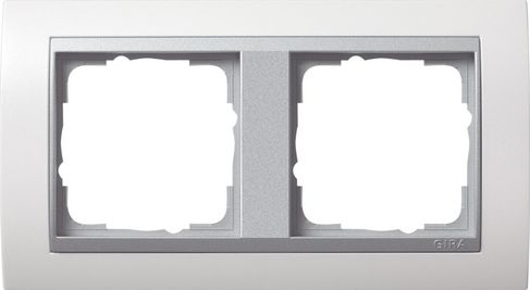 Установочная рамка Gira Event Белого глянцевого цвета с промежуточной рамкой "алюминий"